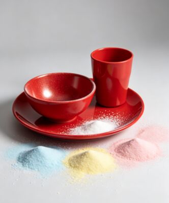 أدوات المائدة المصنوعة من الميلامين (تطبيق إضافي): يُستخدم LG220 بشكل متكرر لتلميع أدوات المائدة المصنوعة من الميلامين لجعلها لامعة وحماية تصميمات الملصقات.